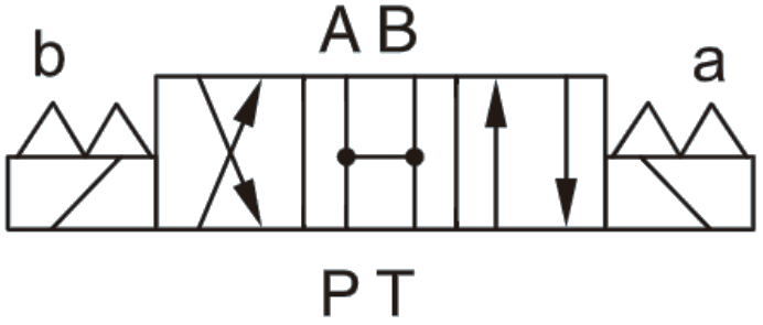 DO3 3 position solenoid operated directional control valve for directing fluid flow in hydraulic circuit. Featuring terminal box type electrical connection with indicator lights. Long life and quiet operation. P, A, B ports connected to T port in neutral position.