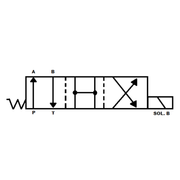 DO3 2 position solenoid operated directional control valve for directing fluid flow in hydraulic circuit. Featuring terminal box type electrical connection with indicator lights. Long life and quiet operation. P to A, B to T neutral position. All ports connected during spool shift.